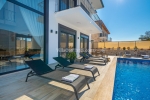 Şezlonglar, güneş şemsiyesi, pergola, çardakta özel bahçe oturma grubu, yemek masası ve sandalyeler vs. bulunmaktadır.
