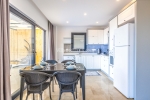 Modern Amerikan Mutfakta ; buzdolabı, bulaşık makinesi, çamaşır makinesi, ankastre fırın, ankastre 4'lü ocak, mikrodalga fırın, tencereler, tavalar, bardaklar, yemek takımı, çatal-kaşık takımı, yemek masası ve sandalyeler bulunmaktadır.