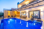 Özel havuz, havuz terası, şezlong, güneş şemsiyesi, salıncak, yemek masası, bulunmaktadır.