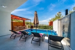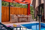 Villamızın bahçesinde özel yüzme havuzu, şezlonglar, güneş şemsiyesi, bahçe oturma grubu, yemek masası, vs. bulunmaktadır.