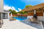 Şezlonglar, güneş şemsiyesi, pergola, çardakta özel bahçe oturma grubu, duş, taş yapım barbekü, yemek masası ve sandalyeler vs. bulunmaktadır.