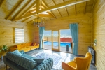 Salon içerisinde şık bir oturma grubu, klima ve TV yer almaktadır. Salondan havuz bölümüne direkt çıkış bulunmaktadır.