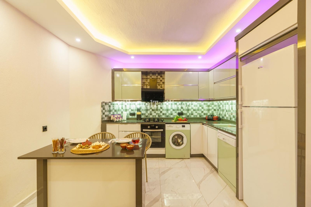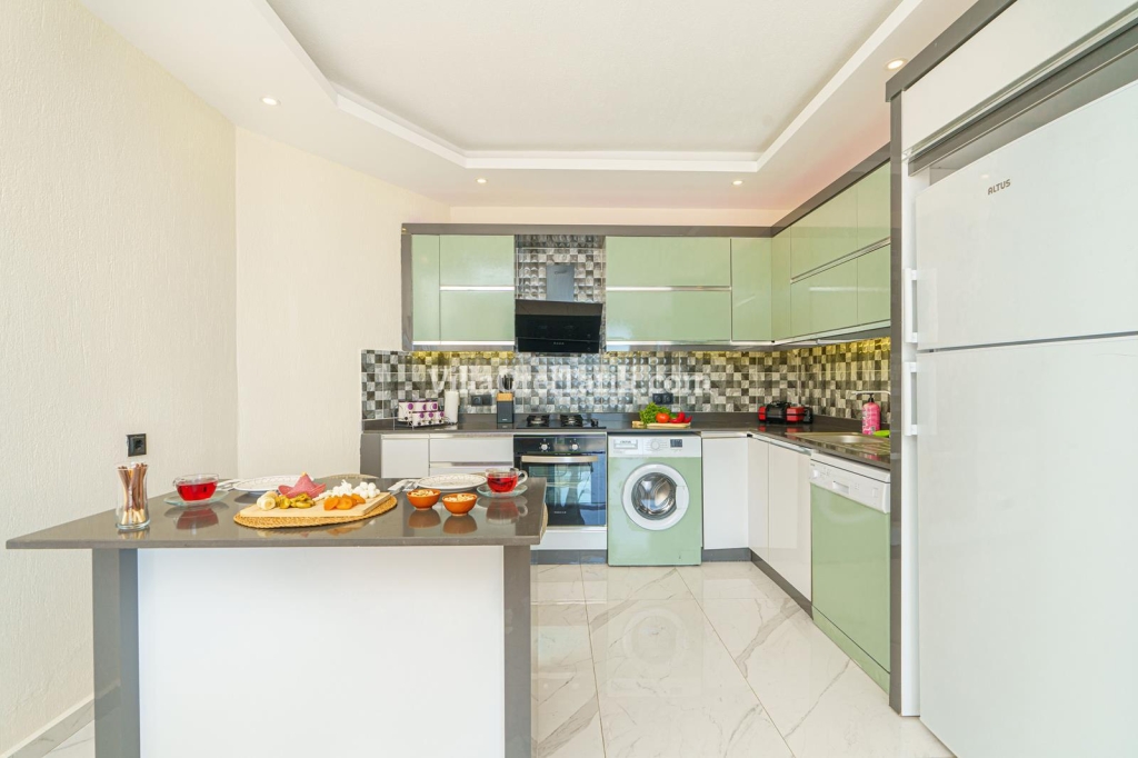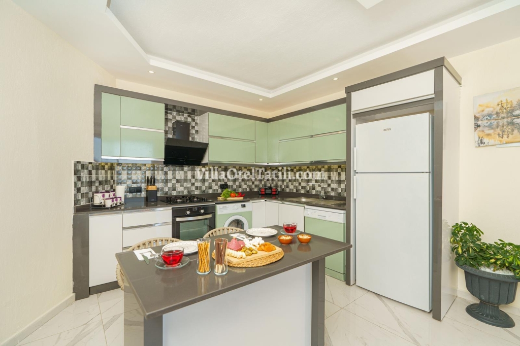 Amerikan mutfak içerisinde buzdolabı, bulaşık makinası, çamaşır makinası, yemek masası, fırın, 4’lü ocak, elektirikli su ısıtıcı, yemek takımı, tava ve tencereler, çatal, bıçak takımı bulunmaktadır.