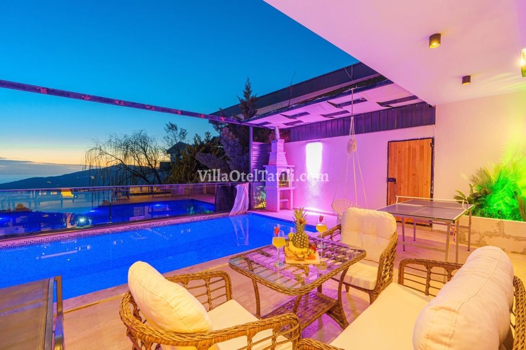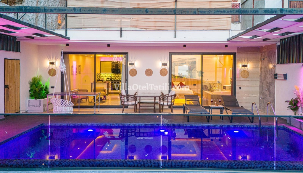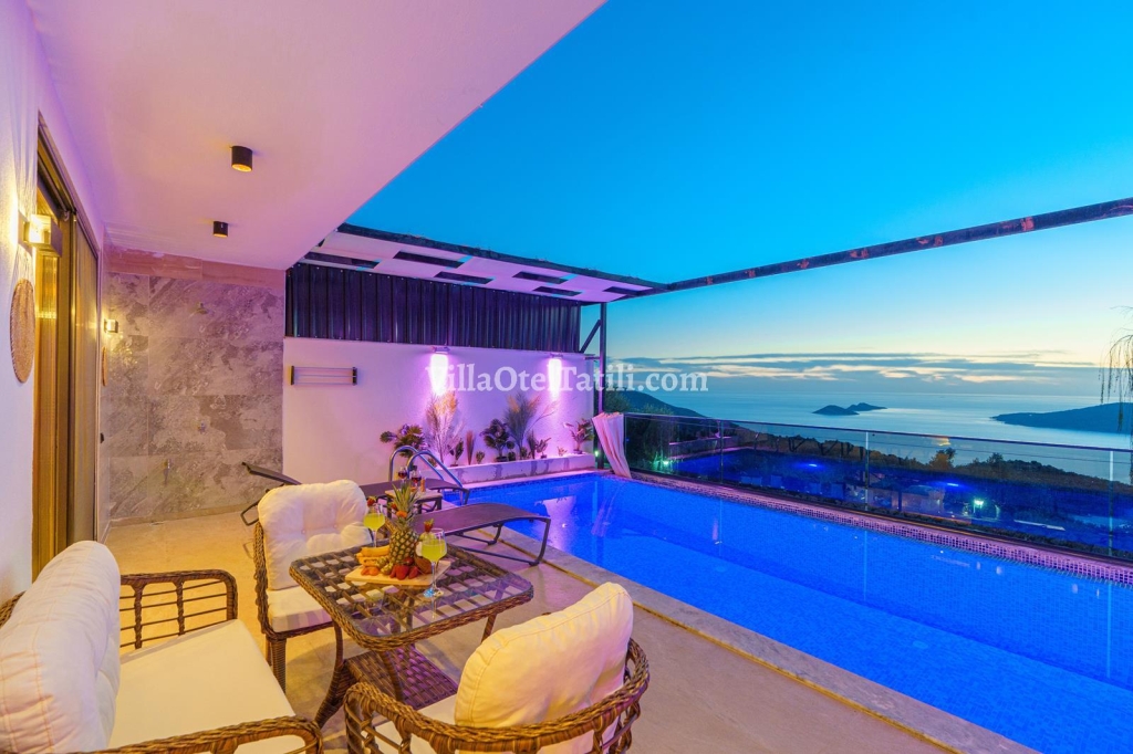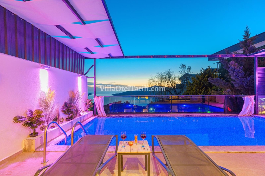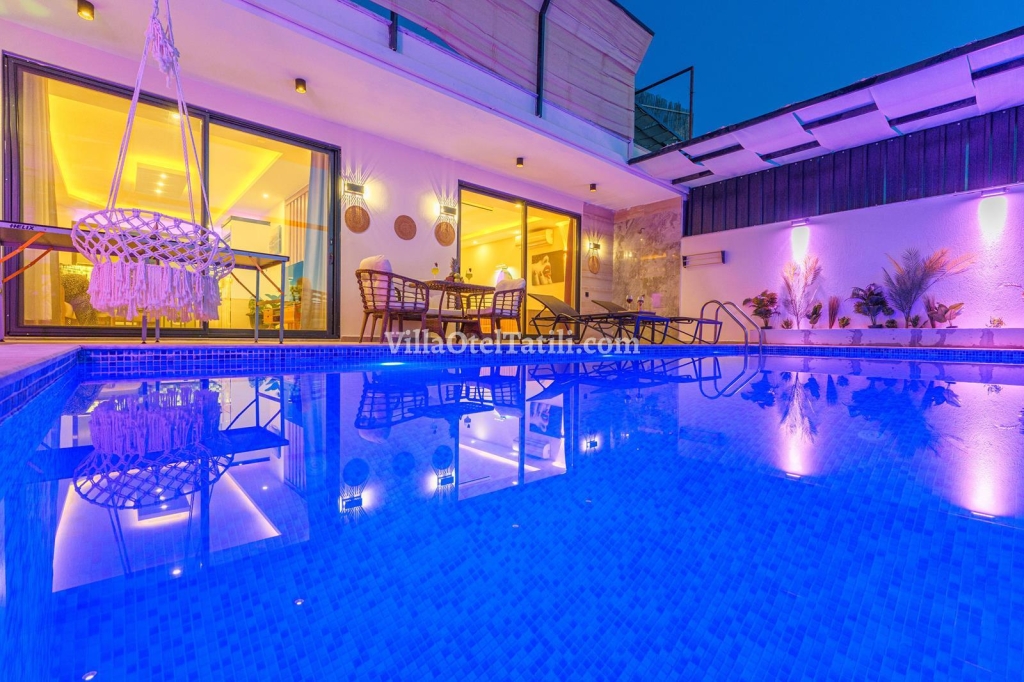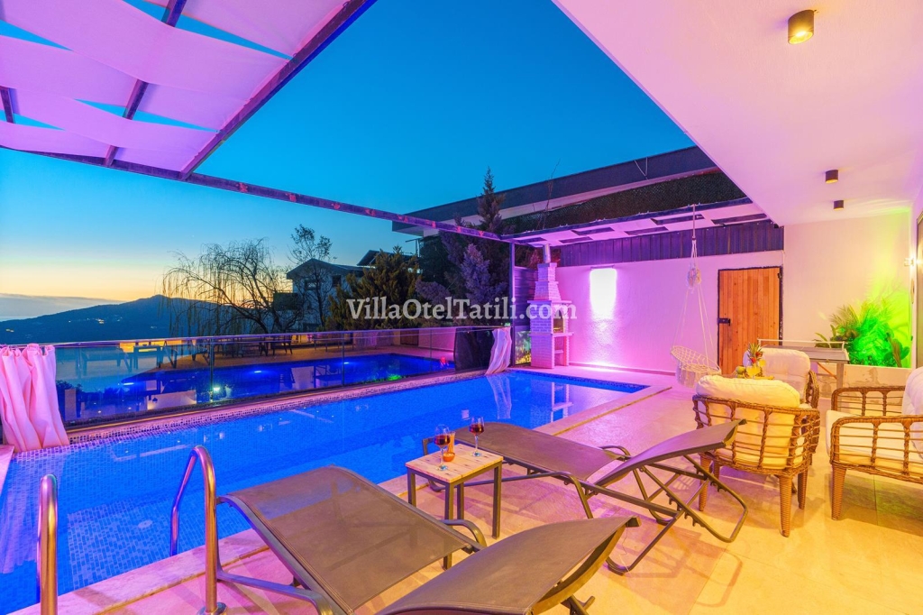 Villa İlkim ; Kalkan Kördere'de konumlanmıştır. Villaya geldiğinizde gördüğünüz her şey sizi mest edecek. Balayı villası. Her şey yeni evlenenler için düşünülmüş. Sadece iki kişilik yatak odası bulunuyor. Son derece korunaklı bir havuzu var. Kimseler sizi görmeden sevdiğiniz insanla gündüz gece fark etmeksizin yüzebilirsiniz. Bunun yanı sıra villa da özel jakuzi var. Havuzda yüzerken yer gök mavi deniz manzarasına karşı yüzüyorsunuz. Villanın hemen yanı başında salıncak için de ne denir ki. İç dekorasyon ise tek kelime ile muhteşem. İnsan bu villaya gelince bir daha asla çıkmak istemeyebilir.