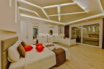 Lüks Oturma grubu, şömine, uydu alıcı, TV, Wİ-Fİ, klima, yemek masası, sandalyeler, havuz terasına çıkış bulunmaktadır.