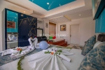 1. Yatak Odası: Çift kişilik yatak, klima, komodin, elbise dolabı, makyaj masası, jakuzi, banyo ve lavabo bulunmaktadır.