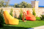 Şezlonglar, güneş şemsiyesi, pergola, çardakta özel bahçe oturma grubu, duş, taş yapım barbekü, yemek masası ve sandalyeler vs. bulunmaktadır.