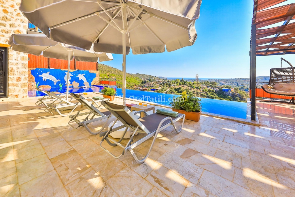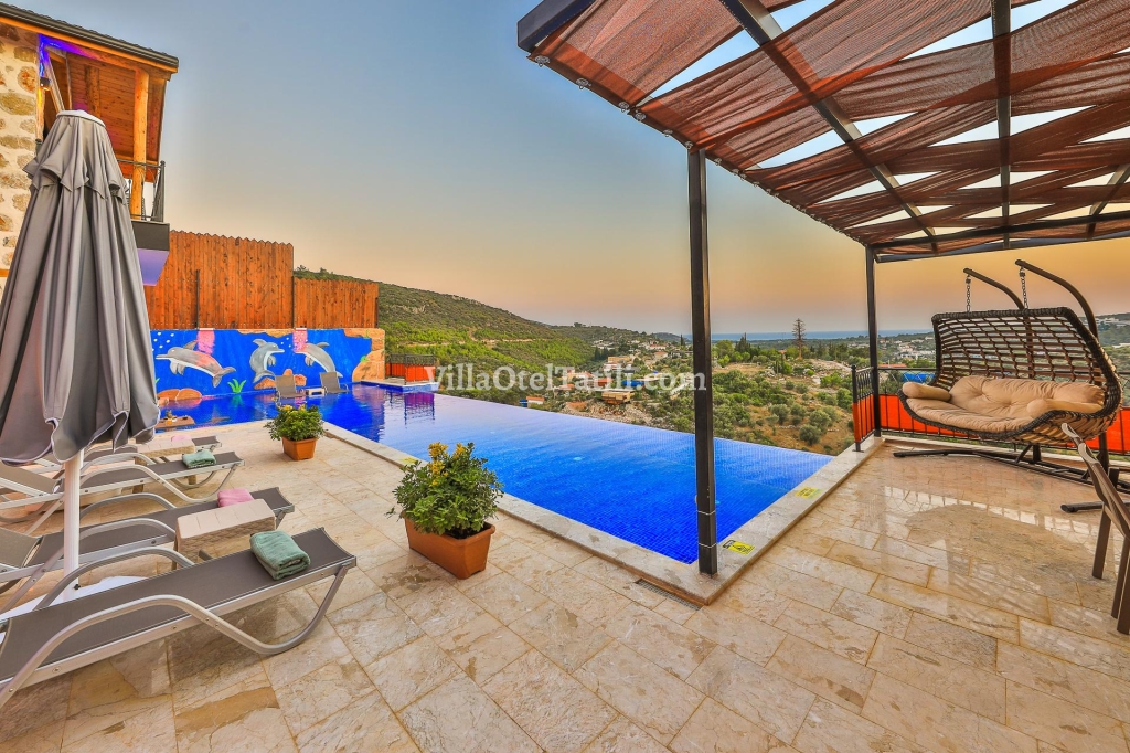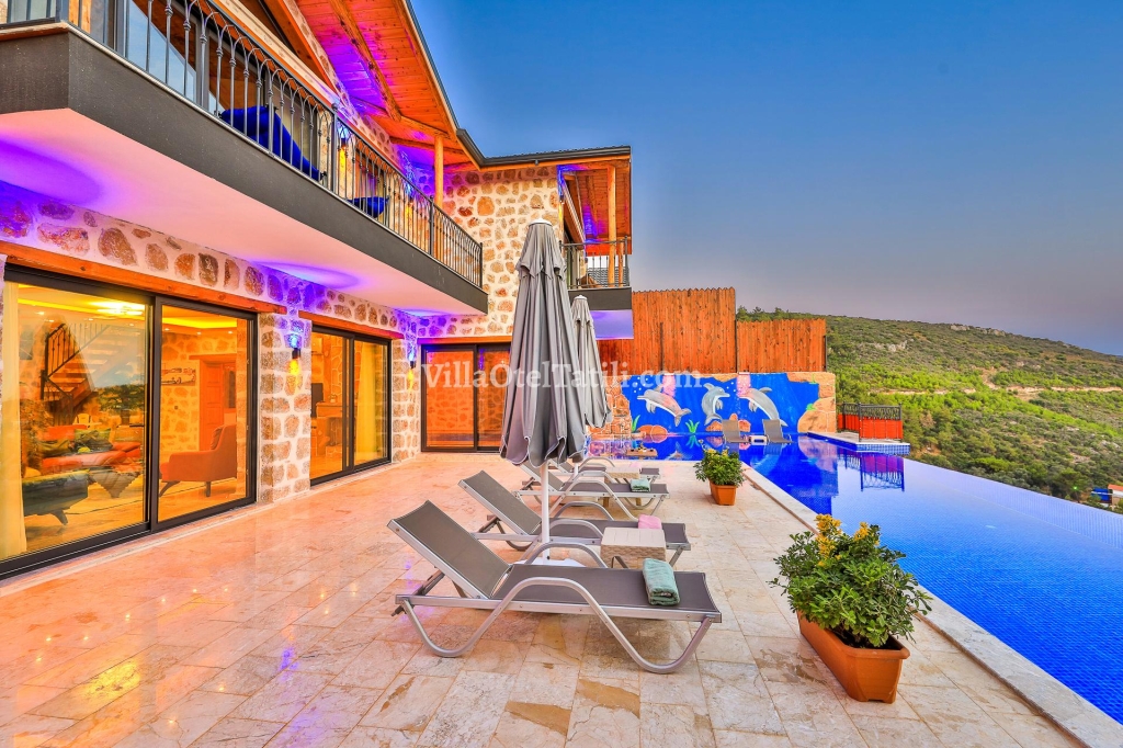 Villa Teciroğlu 2; Antalya Kaş Patara mevkiinde yer alan villamız, doğa ile iç içe bir konumda size tatil fırsatı sunan özel havuzlu tatil villamız 3 yatak odasına sahip olup 6 kişilik ailelerimiz için güzel bir tatil imkanı sunmaktadır. Taş mimarisi kullanılarak dizayn edilmiş , havuz alanı ve bahçesi dışarıdan görülmeyecek şekilde tasarlanmış bir yapıda tatil villasıdır. Deniz manzarası, ısıtmalı havuzu, saunası ve hamamıyla birlikte tatilinizi güzelleştirecek siz değerli müşterilerimize ortaklık edecektir. Bu özellikleri ile villamız arkadaş gurupları için de tatil imkanı sunmaktadır. Muhteşem bir tatilde sizlere ortaklık etmek için dizayn edilen villamızın denize uzaklığı yaklaşık 2,5 Km'dir.