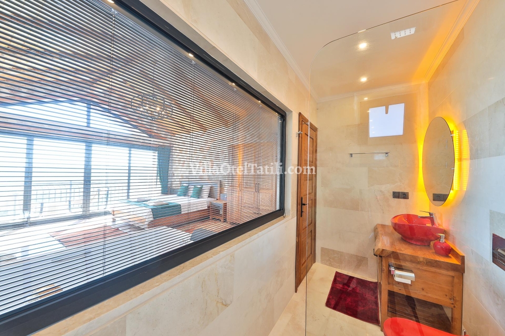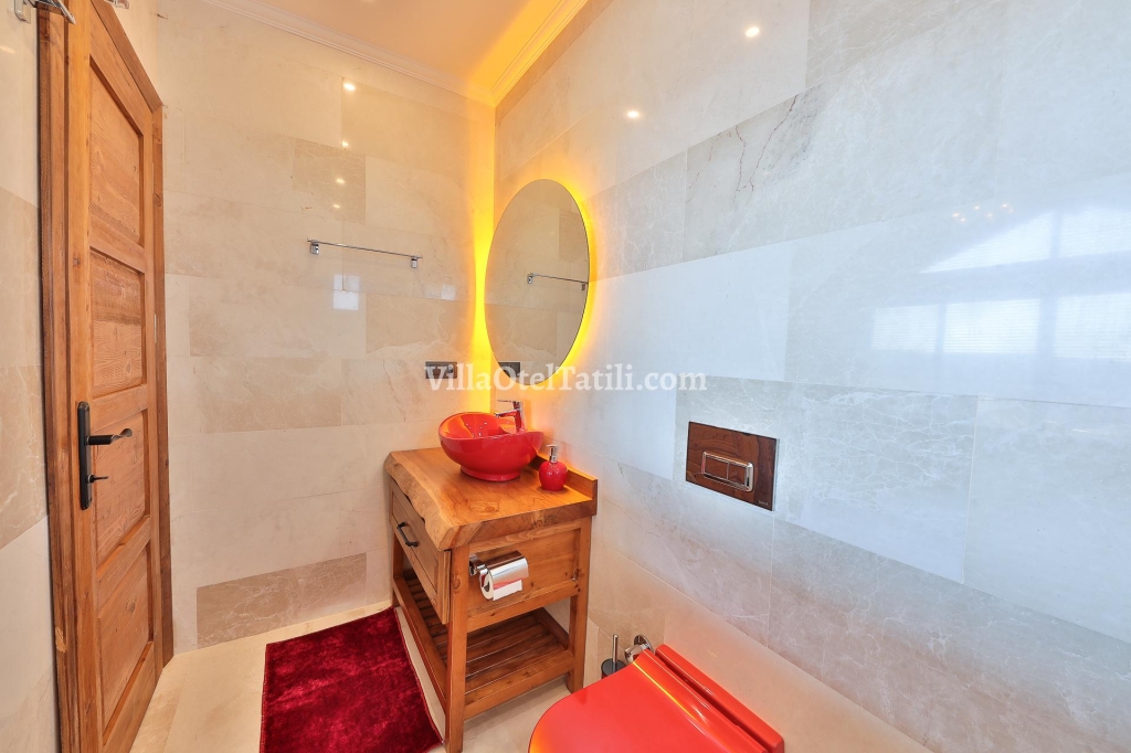 2. Yatak Odası: 1 adet çift kişilik yatak, jakuzi, komodin, elbise dolabı, makyaj masası, klima, tv. banyo ve tuvalet bulunmaktadır.