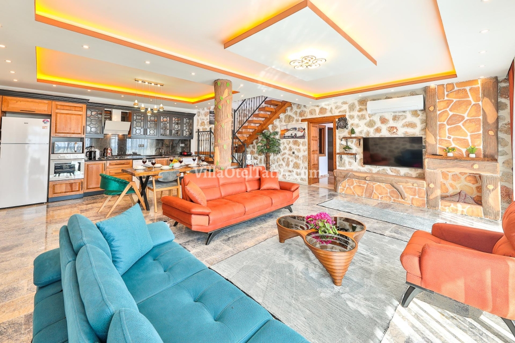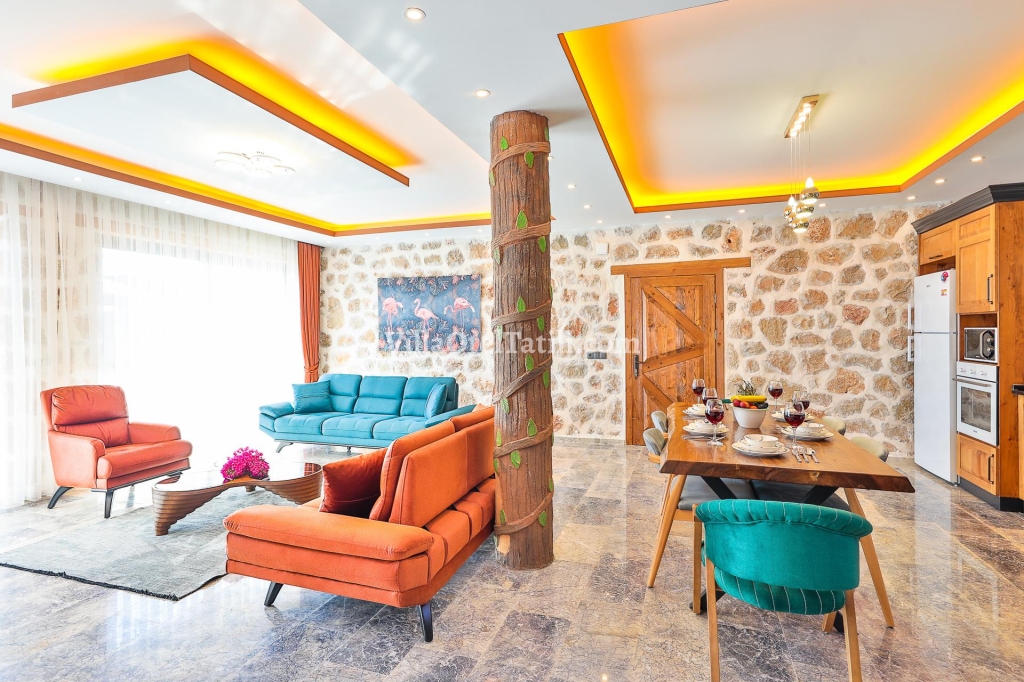 Rahat Oturma grubu, klima, tv, yemek masası, orta sehpa bulunmaktadır.