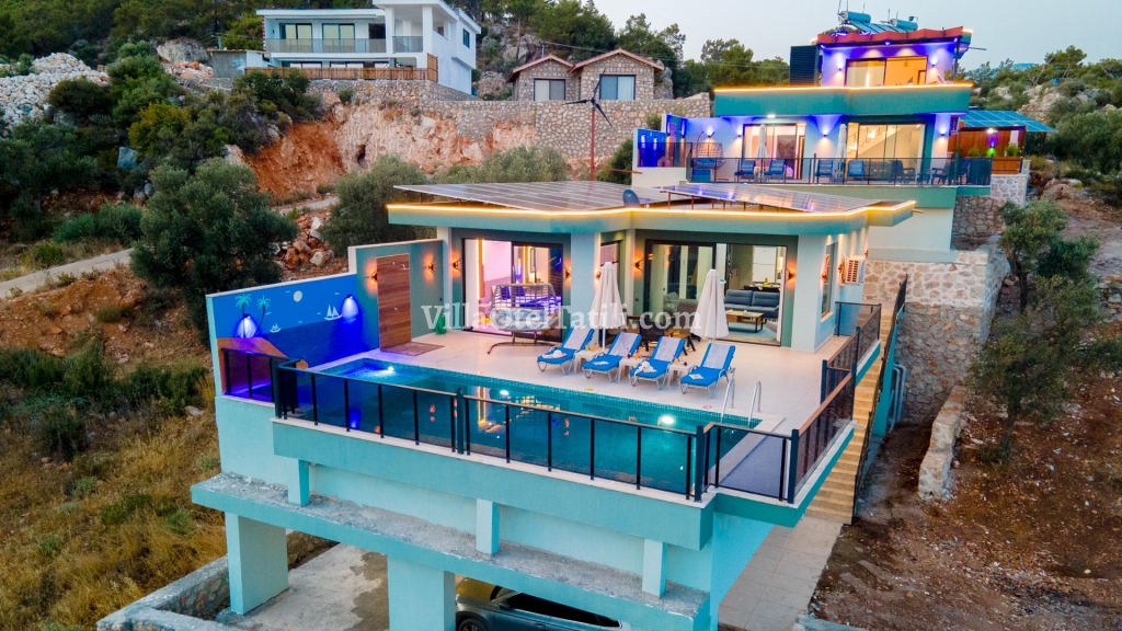 Villa Teciroğlu 4; Kalkan Patara Yalı mevkiinde harika bölgeye konumlandırılmış deniz manzaralı Villa Teciroğlu 4 , 2 yatak odalı 4 kişi konaklama olanağına sahip villamızdır. Kendini gösteren, modern ve çarpıcı bir etki yaratan Villamız, havuz terasından muhteşem deniz manzarasına hakimdir. Konforunuz için özel olarak tasarlanan Villa Teciroğlu 4, ihtiyaçlarınızı tam anlamıyla karşılamak için gereken her şeyi bünyesinde barındırıyor. Gözlerden uzak rahat bir tatil olanağını her anlamda sizlere sunabilen özel bir villadır. Deniz manzarası eşliğinde hem keyifli vakitler geçirebilir hem de tüm yılın yorgunluğunu atabilirsiniz. Ailenizle ,arkadaş grubunuzla veya balayı tatilleri için unutulmaz zamanlar geçirebileceğiniz kiralık tatil villalarından biridir. eşsiz deniz ve doğa içerisindeki bu modern villamız sizleri tatile davet etmektedir. Sadece size özel havuzlu villada tatil fırsatı sunan villamızın, denize uzaklığı yaklaşık 1,5 km’dir.