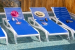 Korunaklı yüzme havuzu, şezlong, şemşiye, masa ve sandalye, mangal bulunmaktadır.
