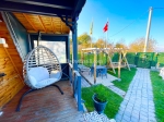 Barbekü, ahşap salıncak, şezlong, masa ve sandalyeler bulunmaktadır.