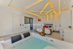 Lüks Oturma grubu, şömine, uydu alıcı, TV, Wİ-Fİ, klima, yemek masası, sandalyeler, havuz terasına çıkış bulunmaktadır.