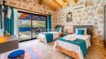 2. Yatak Odası : 2 adet tek kişilik yatak, klima, komodin, elbise dolabı, banyo, havuz terasına çıkış bulunmaktadır.
