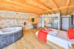 1. Yatak Odası : 1 adet çift kişilik yatak, elbise dolabı, komidin, makyaj masası, klima, jakuzi, banyo ve tuvalet bulunmaktadır.