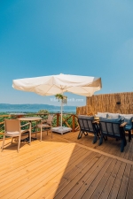 Terasında özel yüzme havuzu, şezlonglar, güneş şemsiyeleri, masa ve sandalyeler, barbekü, ateş çukuru bulunmaktadır.