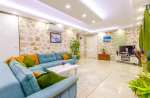 Modern ve konforlu oturma grubu, uydu alıcı, TV, Wi-Fi, Ses Sistemi, Elektrik Süpürgesi, Klima, Yemek Masası ve Sandalyeler bulunmaktadır.