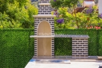 Şezlonglar, güneş şemsiyesi, pergola, bahçe oturma grubu, yemek masası ve sandalyeler vs. bulunmaktadır.